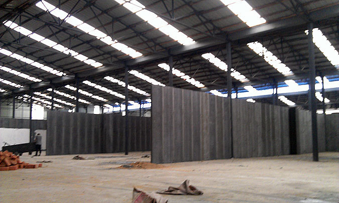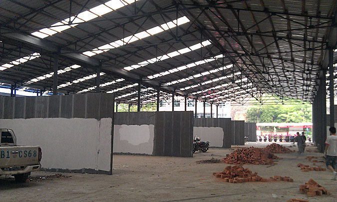 株洲輕質(zhì)隔墻板鋼結(jié)構(gòu)隔墻工程,株洲摩托車大市場,市場面積約六千平米,輕質(zhì)隔墻板面積約五千平米,甲方工期要求比較緊,工期只有八天,我公司安排四組專業(yè)安裝人員,在工期內(nèi)圓滿完工。